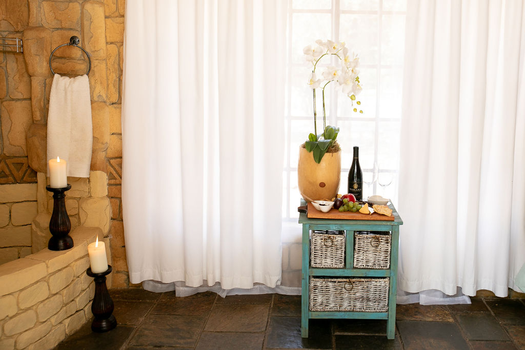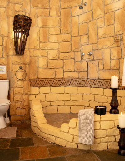 Our Honeymoon Chalet offers a cozy double bed, ideal for couples seeking a peaceful retreat. This open plan suite is equipped with a shower (no bath) and a bar fridge for your convenience.