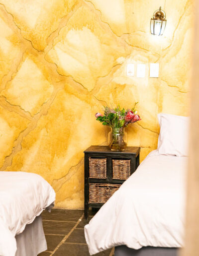 The Njala Chalet, where comfort meets versatility. This chalet features a cozy double bed, two single beds, and an additional two single beds in the loft. The Njala Chalet accommodates up to six guests comfortably.