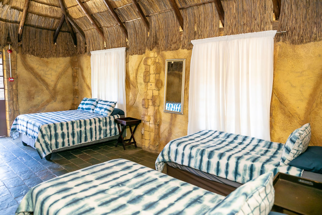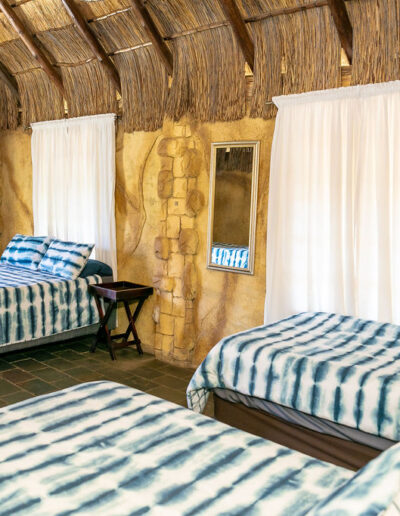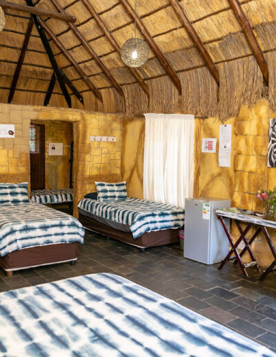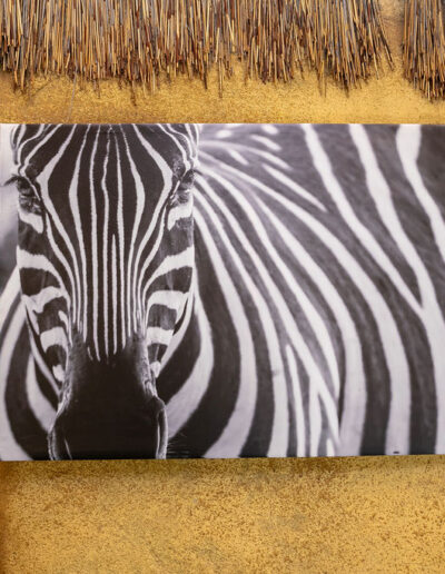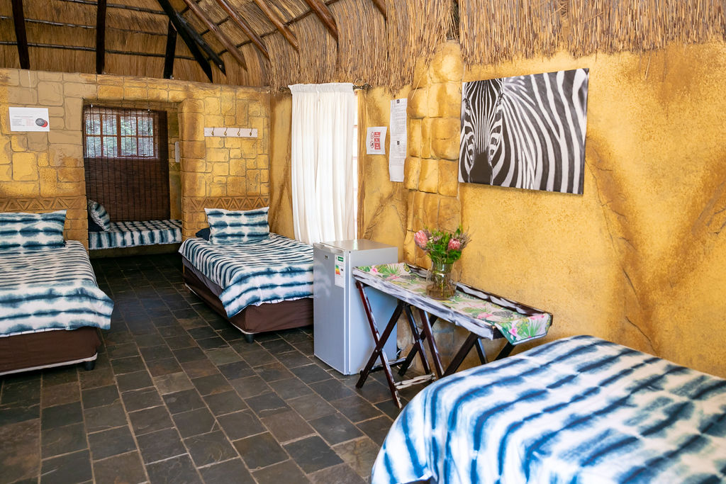 Our Zebra Chalet is ideal for larger groups, equipped with one double bed, four single beds and one bunk bed, comfortably accommodating up to eight guests.